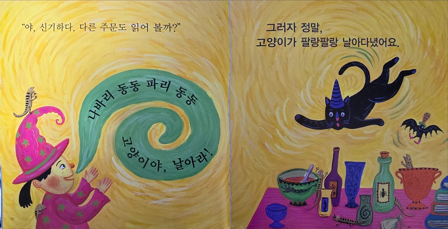 수리당당마녀의 마술책을 볼래 훔쳐보고 마술을 부려보다가 뒷수습이 안되서 일어나는 일들입니다.
